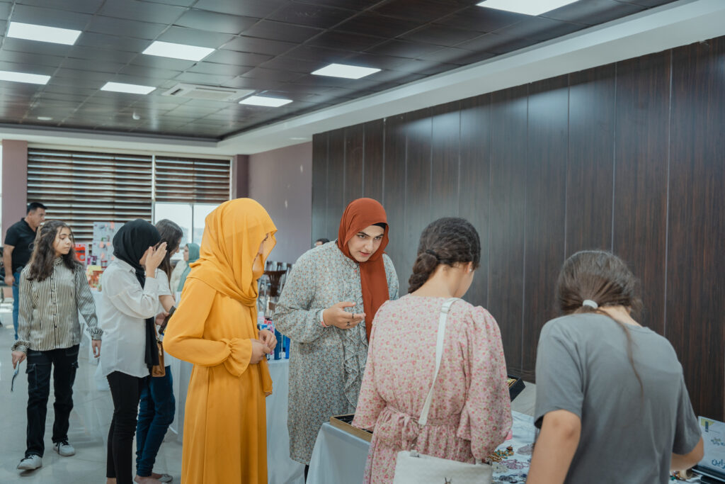 A highlight of the event was the vibrant entrepreneurship exhibition, featuring over 25 booths showcasing local businesses and vocational work. Representatives from various NGOs and institutions were also present, fostering productive networking and collaboration. This exhibition offered local businesses a platform to gain visibility, establish connections, and sell their products. Alan Qaradaghi, owner of a small business named Asan Zhyan expressed his gratitude, stating, “You have done a truly remarkable and beautiful job. The event demonstrated that four minutes of engagement can often be as beneficial as four years of university.”