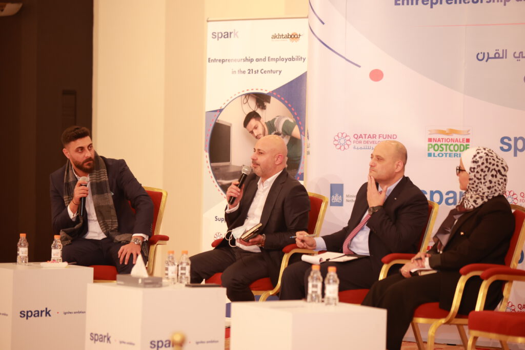 The second panel entitled ‘Education and Pathways to Employment’ included the Director of Innovation and Entrepreneurship Center at the University of Jordan, Ashraf Bany Mohammed, Fatima Al Qaisi, the Corporate Engagement Manager at EFE Jordan, and Ghaleb Hijazi, the General Manager at Business Development Center, with discussions moderated by Ibrahim Banat, Regional Media and Communications Specialist at SPARK. Upon closing of the panel discussions, a job matching event took place where students and participants of various SPARK programmes met with potential employers from the private sector.